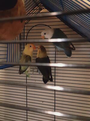 2 lovebirds bonded male and female female laying eggs call or text 630-362-8619 thank you ...