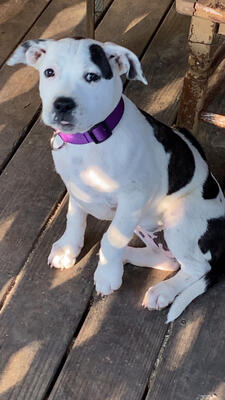 White and black brindle spots very beautiful girl looking for a new couch . 618-697-4951...