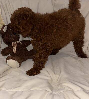 Red male mini labradoodle. 14wks old and up to date on shots and dewormer. Very high energetic. Rais...