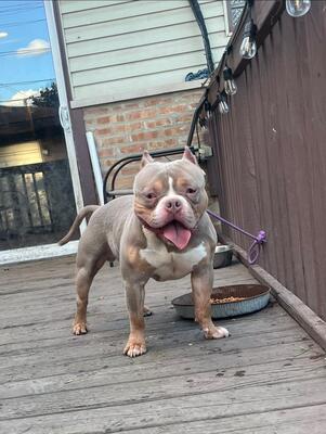 I have a Blue & White pocket American Bully open for stud. (Located in Chicago Il) (Lucky Luci...