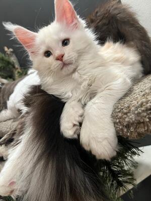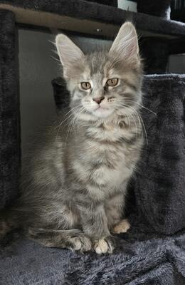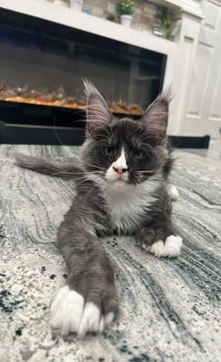 Description *: Very friendly clever baby Maine coon born 2-16 -2025 He have all his shot, silve...