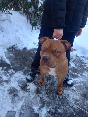 4.5 year old American Bully Black with white accents. Has had 1 litter of 8 puppies. Trained, hous...
