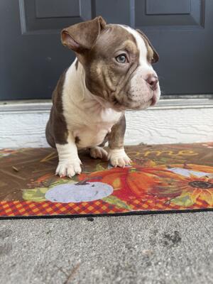 I got a beautiful chocolate, female bully available great pedigree, great confirmation short and com...