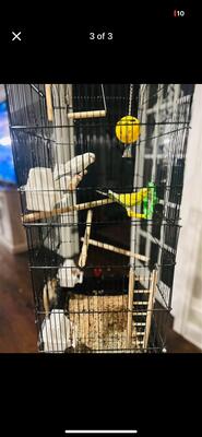 Two Parakeets for sale. One male (Lennon) and one female (Snowball). They must stay together because...