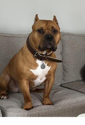 Male American Bully he will be 4 years old on 12/24. Neutered, looking to rehome best with no kids. ...