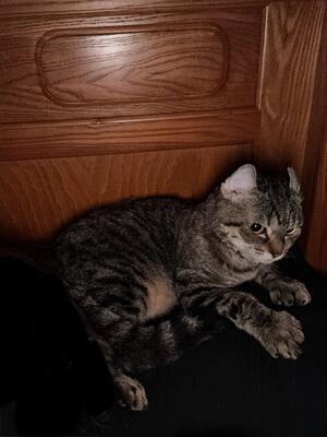 1year old, not spayed, feline leukemia negative, great with all people and pets. Highland Lynx, curl...
