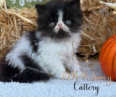 Black and white bi-color male will come with CFA registration slip, vet check with age-appropriate v...