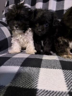 Born June 27 Female TINY true toy poodle Tail docked Both parents are AKC White tuxedo chest L...