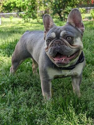 Handsome, sweet and energetic AKC French Bulldog pup; great with other dogs and kids. Loves explorin...