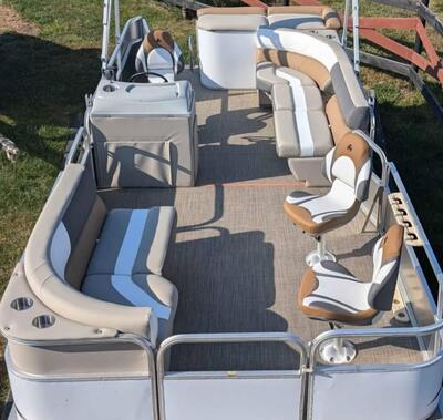This pontoon was completely redone by elite covers and interiors.New floor ,seats Bimini ,cover. Mot...
