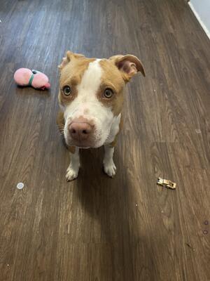 Some kind of pitbull mix. Female, about 5-6 months old. Not fixed. Vaccinated and dewormed. Loves to...