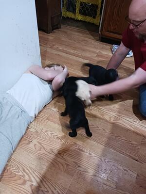 3 black and one yellow born June 23,2024 they will come with first set of shots and wormed. No pa...