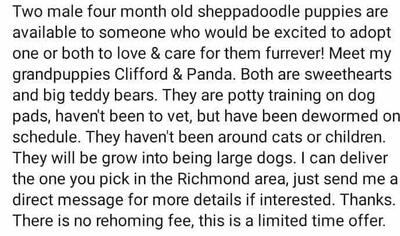 Males and females Ready to go after 10/19 Vaccinated and dewormed Connersville IN ...