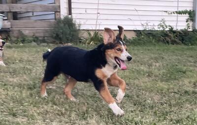 This saddleback male is friendly, obedient, and moderately energetic. He is quick to learn. He enj...