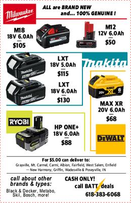 Batteries for Milwaukee, DeWalt, Ryobi, and Makita. 100% Original Equipment Manufacturer and bran...