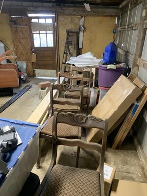 A genuine Duncan Phyfe folding table and 4 chairs. Table is in dire need of help, but a restoration...