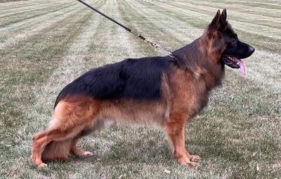We have a regular coat black/tan german shepherd female out of excellent bloodlines. Sire is Drake ...