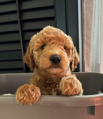 Two brown female goldendoodles available. Both parents are goldendoodles. They will be small/medium ...