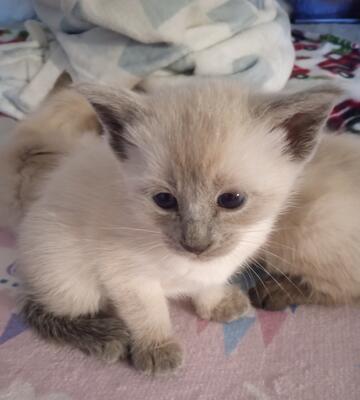 Balinese babies born February 2025. Blue point female, chocolate points female and chocolate point m...