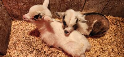 Beautiful blue eyed babies One male brown coloring with white One female mostly white with black m...