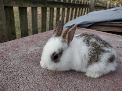We have three baby bunnies that we are looking to give away to a good home. They are a cross between...