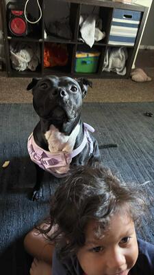 I am helping a friend rehome a 3.5 year old female bully she is not good with other female dogs is g...