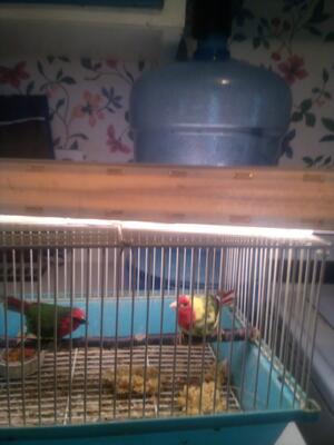 Active and peaceful young pair of parrot finches are ready to breed. Hen is one year old,solid,the C...