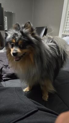 Looking for good home For merle pomeranian all shots house train good with kids and small and gos ...