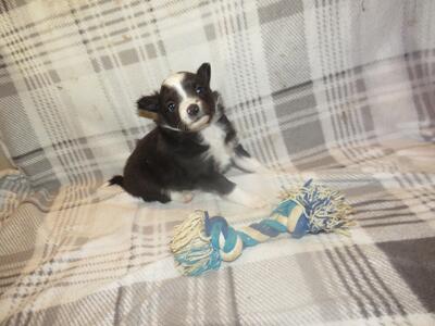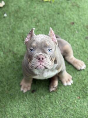 Akc registered with age appropriate shots and deworming Carries blue chocolate piebald and tan poi...