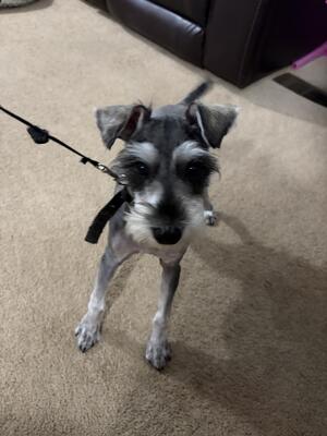 AKC five month old miniature schnauzer. Male he is ppotty trained, crate trained. Can sit walks on ...