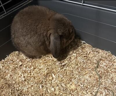 Needs a loving home. Hes around a year old. Very sweet bunny. He will come with his cage, bowls, wat...