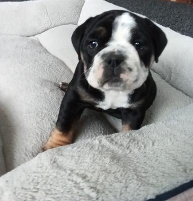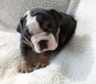 Libby Is a beautiful tri color bulldog girl with a sweet personality born on October 6,2025 . she is...
