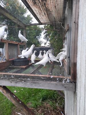 Pure White Mortvedt Racers 6 young birds banded 2024. Check back for availability. Box and shipp...