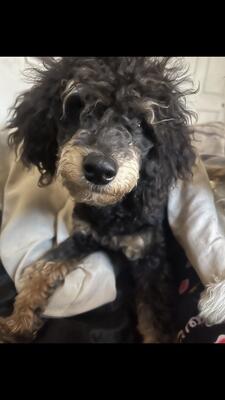1.5 year old male poodle that I took in out of a bad situation mo the ago is looking for a new home....