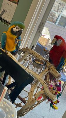 Two beautiful Macaws. Can''t be separated since they have always been together. Mimick sounds male w...