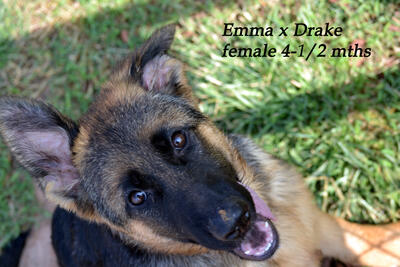 We have a regular coat black/tan german shepherd female out of excellent bloodlines. Sire is Drake ...