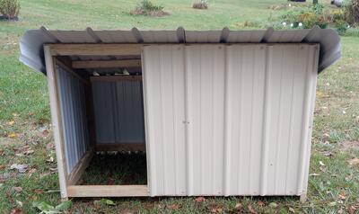 6' wide x 4' deep x 4' tall. Small farm animal shelter. For animals such as goats, sheep, ducks, pig...