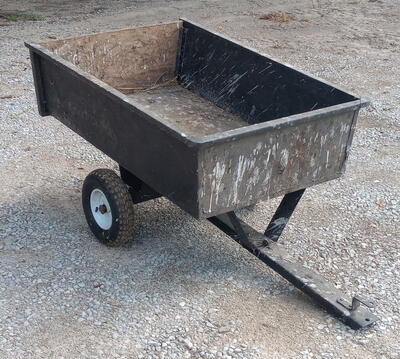 Yard cart. 46" long x 24" wide x 12" deep. Been in the barn and not used for too long. Has good tire...