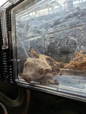 I had a Crested Gecko that came with a tank that I bought in Milford, IN. It's a male that had dropp...