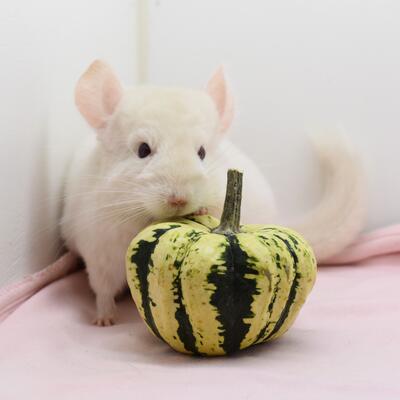 Pink white female chinchilla kit Born 2/21/25 -- 7 months old --relatively easy t...