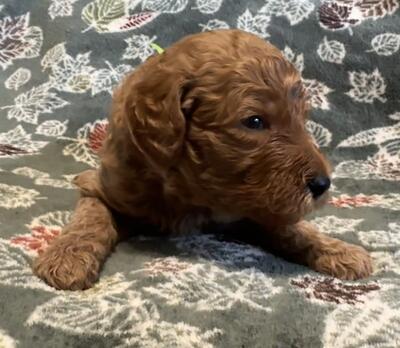 Rosie is an Akc registered red mini poodle 9lbs and 11in Embark tested ee kyky ayaw BB Dd Ssp, int...