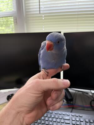 Beautiful violet Indian Ringneck Hatched March 2025 DNA proven male Sweet and playful Comes wit...