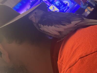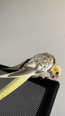 Super sweet male cockatiel loves to hang out on your shoulder and spend the day with you will come w...