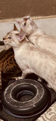 Three snow lynx females two females brown up date shots litter box trained been around dogs and...