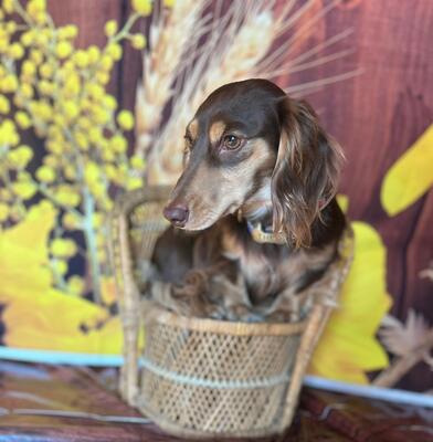 Longhair Dachshund Doxie AKC CKC for stud Chocolate and Cream