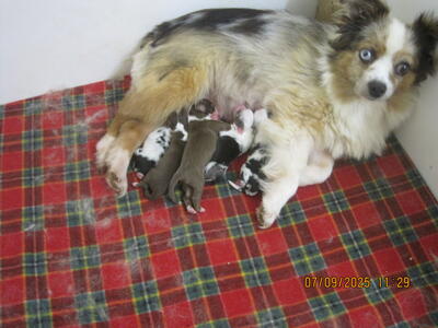 I have 11 miniature australian shepherds 2 adults Leon brown tri 4 years old and Winston black tri 2...