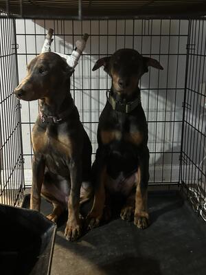 3 Female Doberman Puppies Born May 17th Will be available at 6 weeks mark Dad is black and rust...