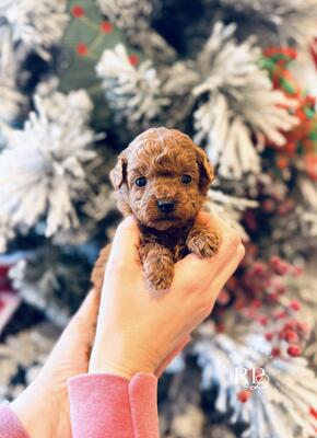 Meet Lumi, a beautiful red, toy-size Goldendoodle girl with a soft, curly, non-shedding coat. She is...