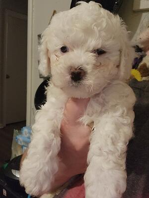 4 male Maltese mini poodle pups. 9 weeks old, first shots and regular deworming. Five two six pounds...