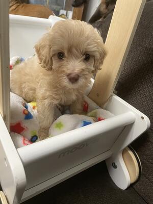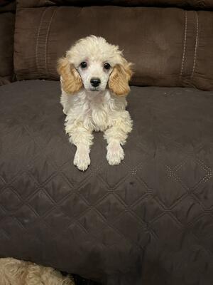 5 month old female toy poodle. 4 pounds and up to date on everything. pet only. We brought her home ...